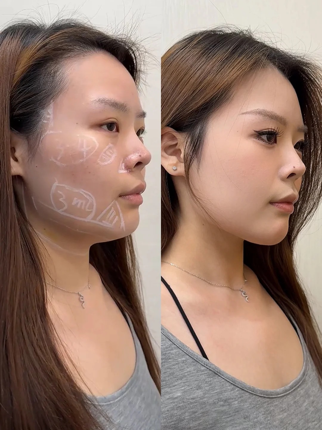 李女士就是不幸的受害者之一。数年前,她在非正规场所接受了所谓的“生长因子填充”,之后面部逐渐出现奥美定危害类似的症状:局部反复红肿、硬结、轮廓畸形。意识到问题严重性后,她经多方打听,来到我院寻求修复。